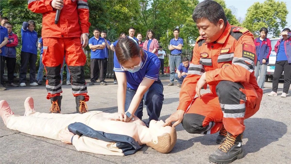 隨后,在現場設置的模擬“起火點”,大家有序排隊進行了滅火器實操演練,以確保每位員工都能正確掌握滅火器的使用方法。同時,現場也模擬了心肺復蘇(CPR)急救和有限空間作業應急救援等場景,完整呈現了“火災發生—緊急疏散—現場救援—120轉運”的全流程,整個實操演練過程組織嚴密、分工明確,達到了既定的演練目標和成效。