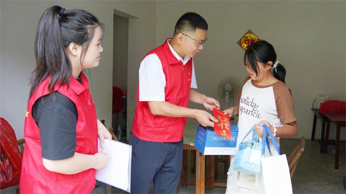 龍山縣苗兒灘鎮(zhèn)總面積219.6平方公里,人口31868人,轄18個(gè)村(社區(qū)),曾是國(guó)家級(jí)貧困縣重點(diǎn)鄉(xiāng)鎮(zhèn),大部分家庭收入主要依賴農(nóng)業(yè)或外出務(wù)工,經(jīng)濟(jì)來源相對(duì)單一,再加之部分家庭因?yàn)榧彝コ蓡T患病,又或者父母離異、單親、監(jiān)護(hù)人缺失等情況,一些孩子在成長(zhǎng)過程中難以得到充足的生活物資和教育資源。2017年起,瀏陽(yáng)經(jīng)濟(jì)技術(shù)開發(fā)區(qū)對(duì)口幫扶該鎮(zhèn)開展脫貧攻堅(jiān)。
