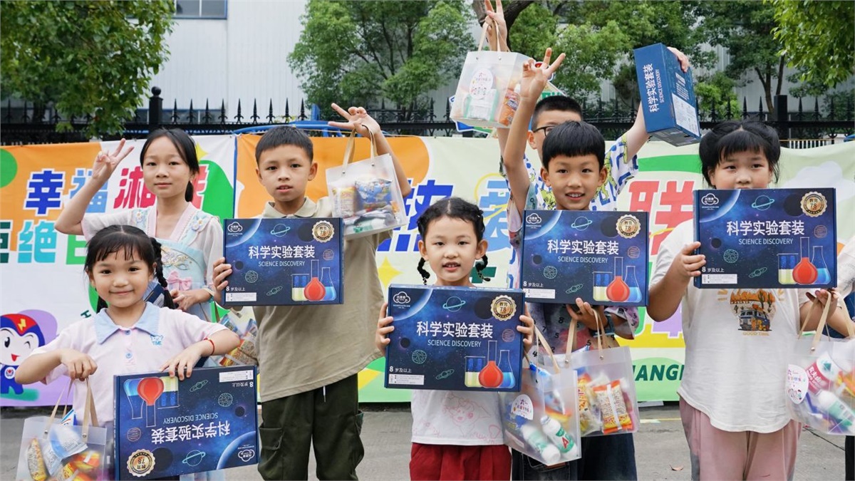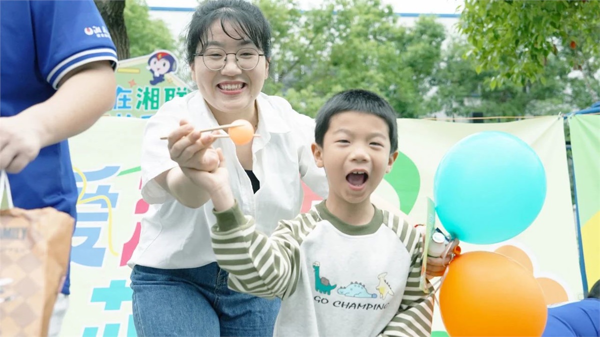 運(yùn)動會后,小朋友們在“湘聯(lián)寶貝歡樂集市”領(lǐng)取了零食禮包和科普實(shí)驗(yàn)套裝,孩子們捧著禮物,臉上洋溢著滿足與幸福。