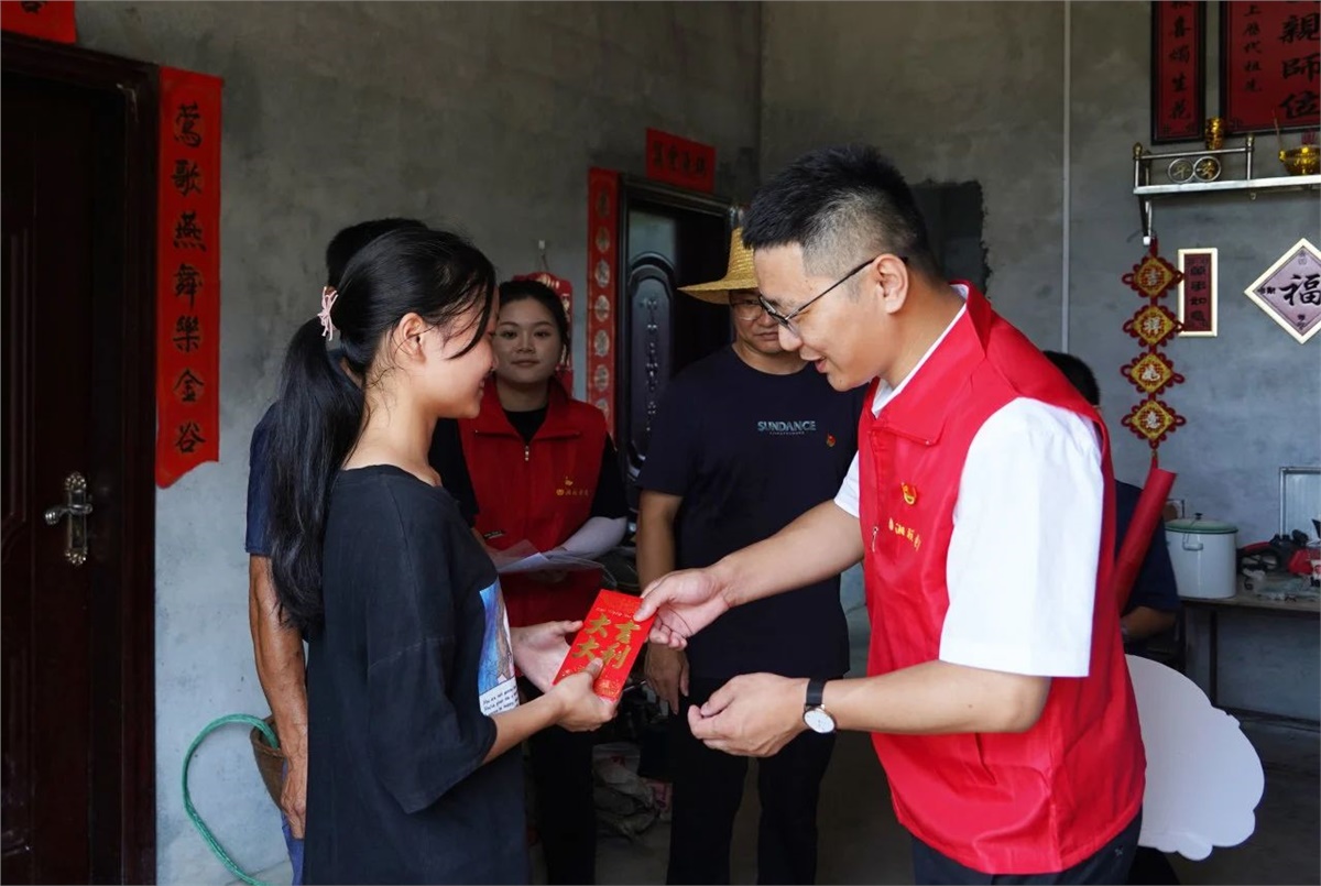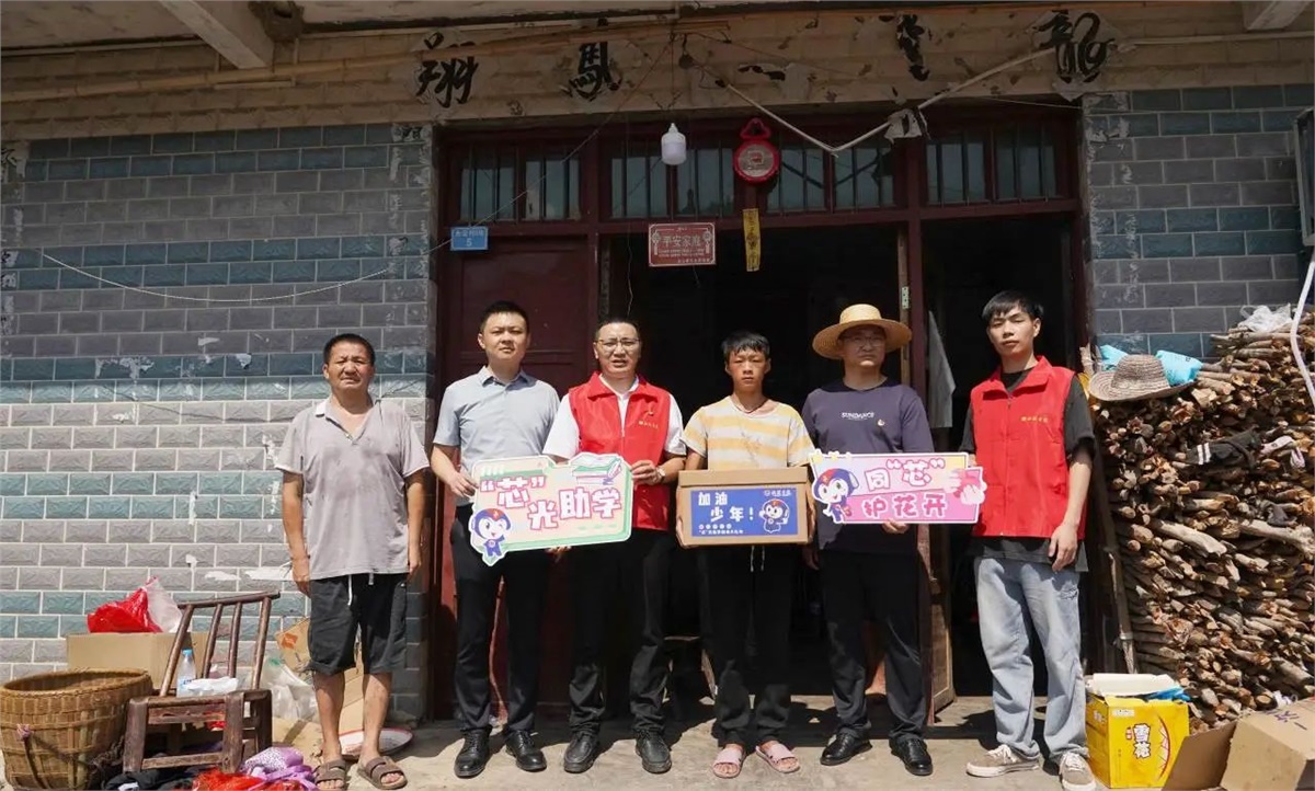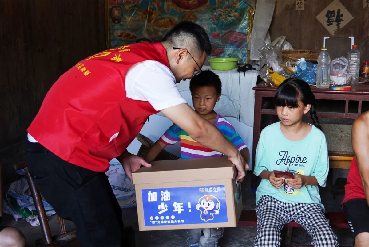 8月23日,在當(dāng)?shù)仡I(lǐng)導(dǎo)干部的陪同與幫助下,湘聯(lián)電纜“芯”光助學(xué)基金會(huì)的志愿者們對(duì)苗兒灘鎮(zhèn)的6個(gè)村,8個(gè)家庭進(jìn)行了實(shí)地走訪,并將“芯”光助學(xué)基金和加油大禮盒送到了孩子們手中。
