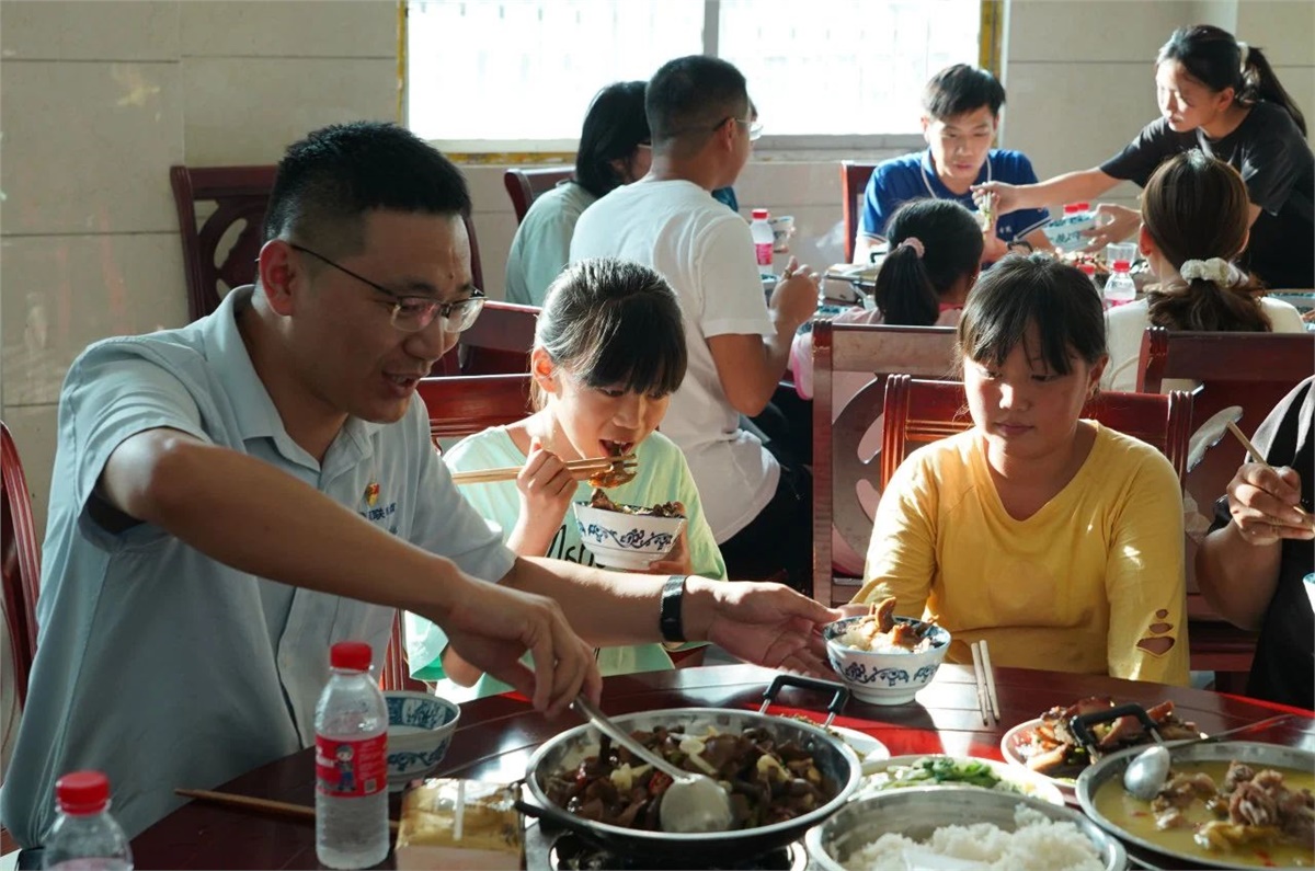 助學(xué)不僅是物質(zhì)上的援助,更重要的是對(duì)孩子們精神上的激勵(lì)與引導(dǎo)。為了拉近與受助學(xué)生的情感距離,在瀏陽(yáng)經(jīng)開(kāi)區(qū)駐苗兒灘幫扶工作隊(duì)和苗兒灘政府的協(xié)調(diào)幫助下,8月22日傍晚,湘聯(lián)電纜“芯”光助學(xué)基金會(huì)邀請(qǐng)受助孩子和其家長(zhǎng)們來(lái)到苗兒灘政府,通過(guò)一起吃晚餐和開(kāi)展座談會(huì)的形式,與受助學(xué)生面對(duì)面交流,了解他們的學(xué)習(xí)和生活情況,并鼓勵(lì)學(xué)生們要立志向上,好好學(xué)習(xí),砥礪成才。